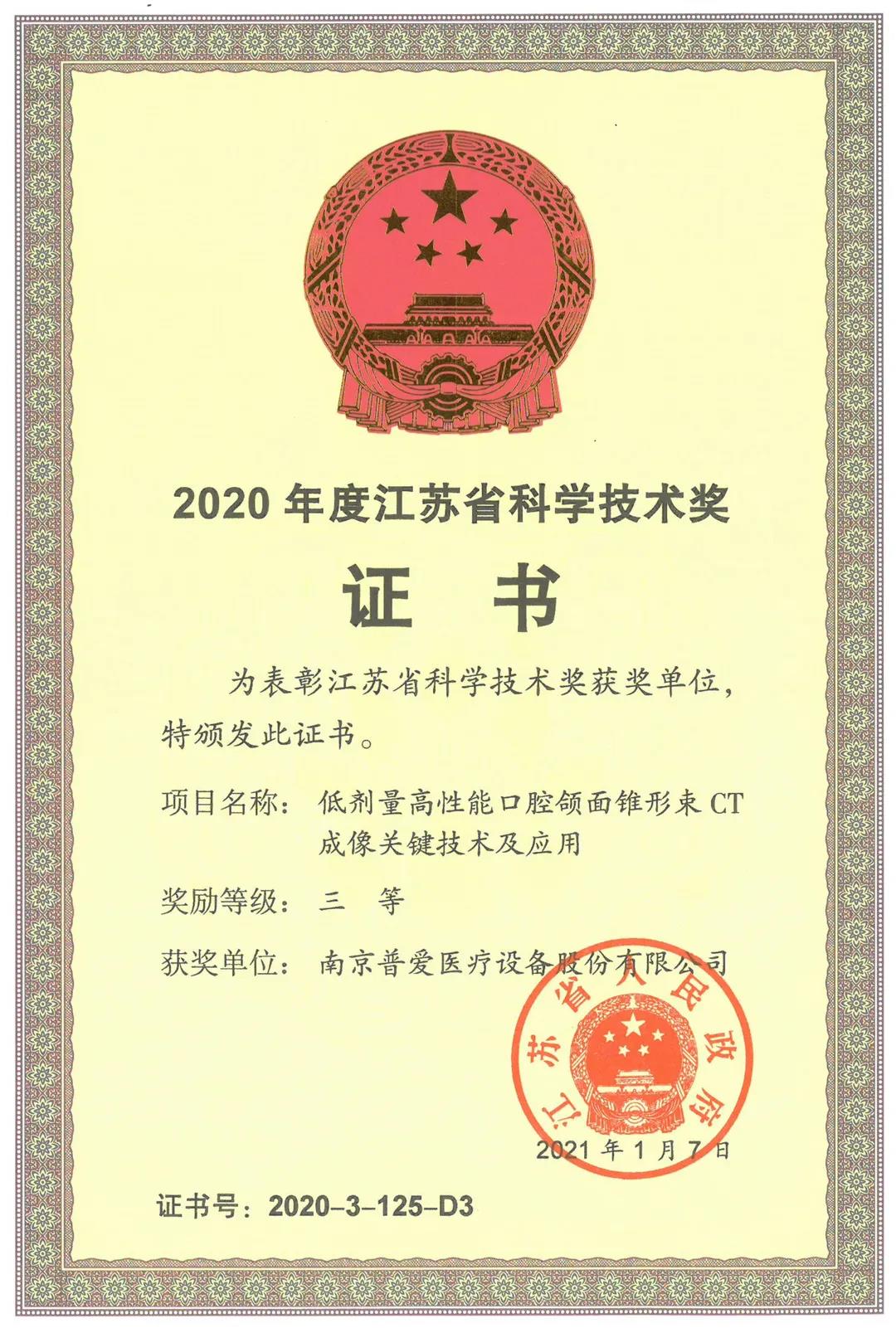 普愛醫療低劑量高性能口腔頜面錐形束CT成像關鍵技術及應用獲江蘇省科學技術獎。