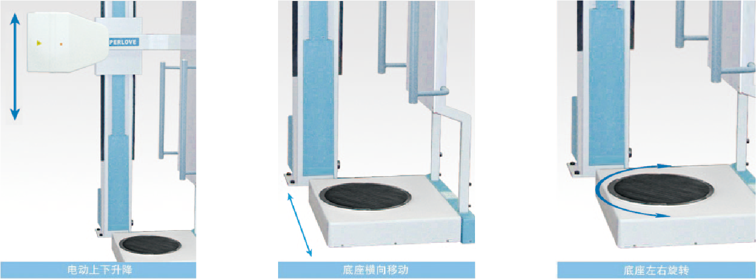1、 電動上下升降、電動橫向移動、電動旋轉(zhuǎn)的功能,真正實(shí)現(xiàn)機(jī)動人不動的方式,使用方便、可靠。